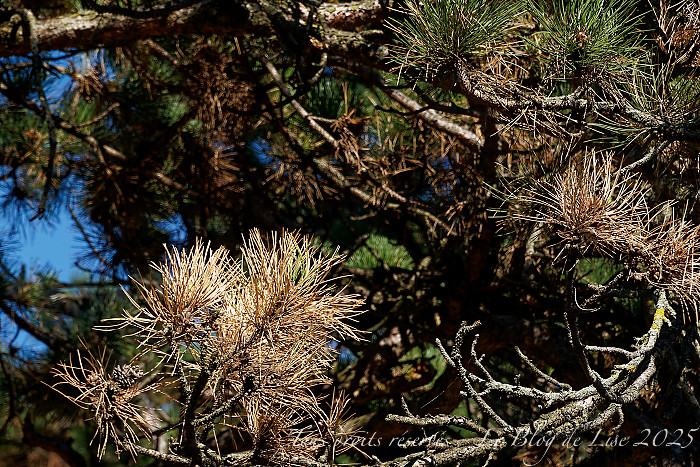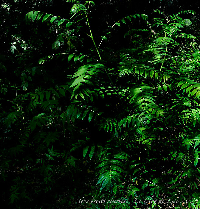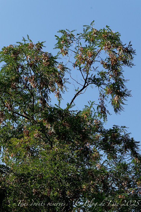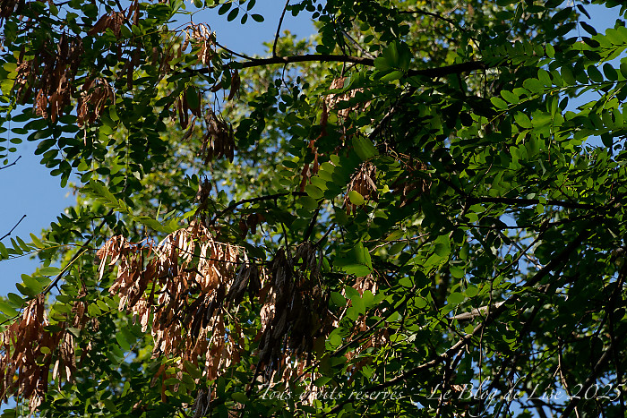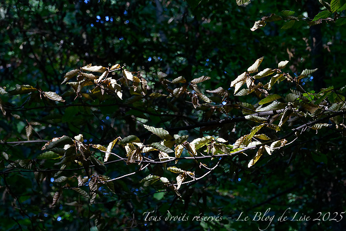 Effectivement, bien qu’encore au moins d’août, en raison des canicules successives et du manque d’eau, les feuilles tirent vers le jaune voire le marron. Les feuilles tombées crissent déjà sous nos pas !