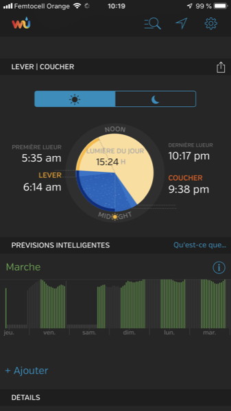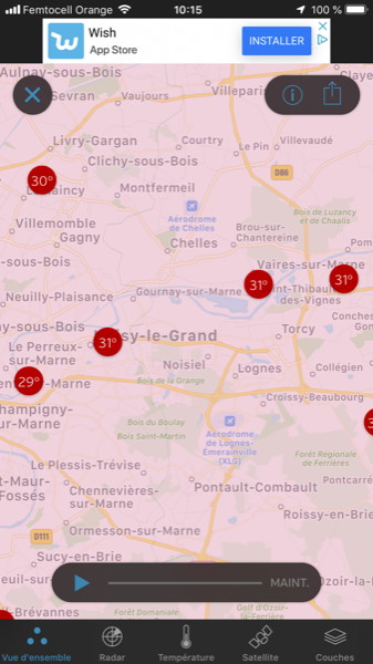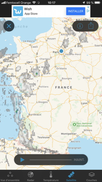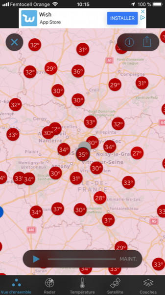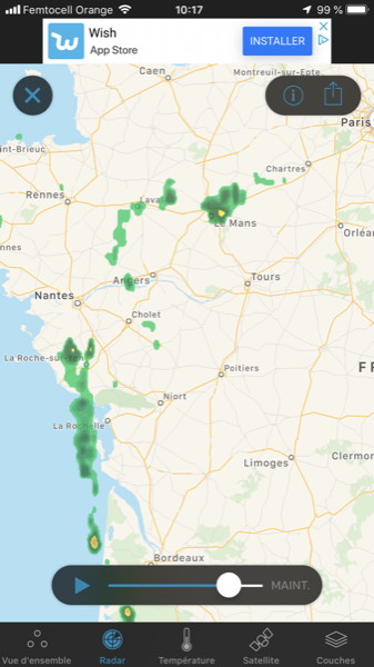 Contrairement à d’autres applications gratuites, la pub n’est pas envahissante, et globalement, Weather Underground affiche des prévisions qui dans l’ensemble sont correctes.