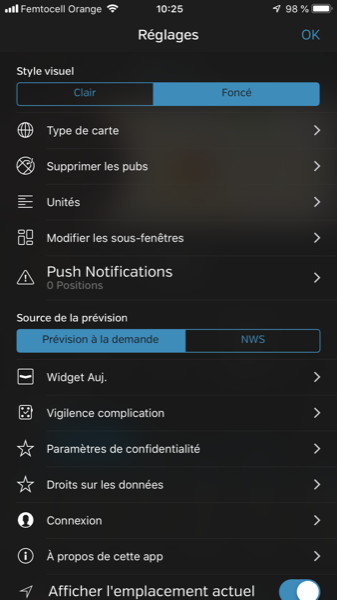 C’est la seule application gratuite que j’ai essayée qui est aussi complète. Outre la description que j’en faisais, elle propose des cartes détaillées sur lesquelles on peut zoomer. Et de nombreuses options sont disponibles.
