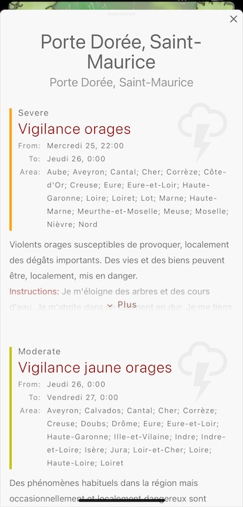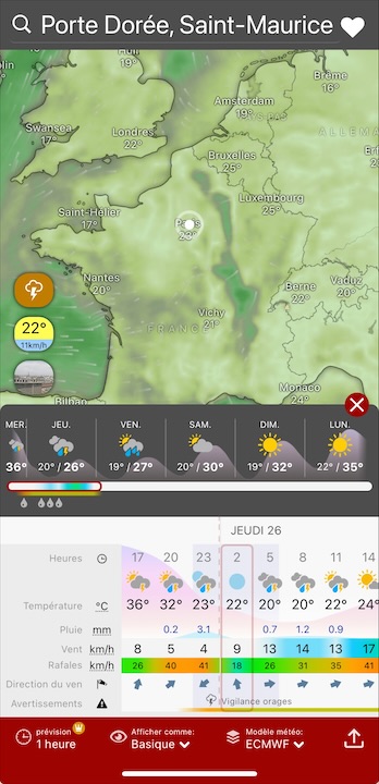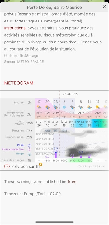 Celle-ci vient d’être mise à jour et apporte quelques nouveautés intéressantes : des alertes d’orage, des alertes en cas de fortes pluies,